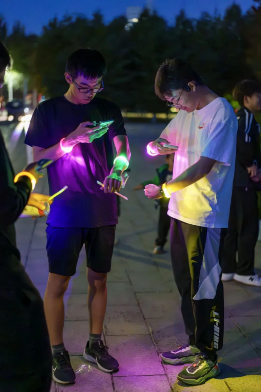 智能夜跑者们陆续到达集合地点