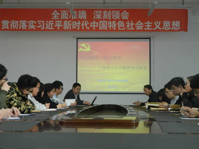 陈万海书记对习近平总书记在十九大会议上所做的精彩报告进行了详细解析,陈岩副书记对学院学生党支部目前可以开展的各项活动进行了周密部署,李欣主任为各党支部书记佩戴党徽,开展党支部书记亮牌示范活动。会议结束后,参会的学生党员自发在网上发表了自己的学习体会。