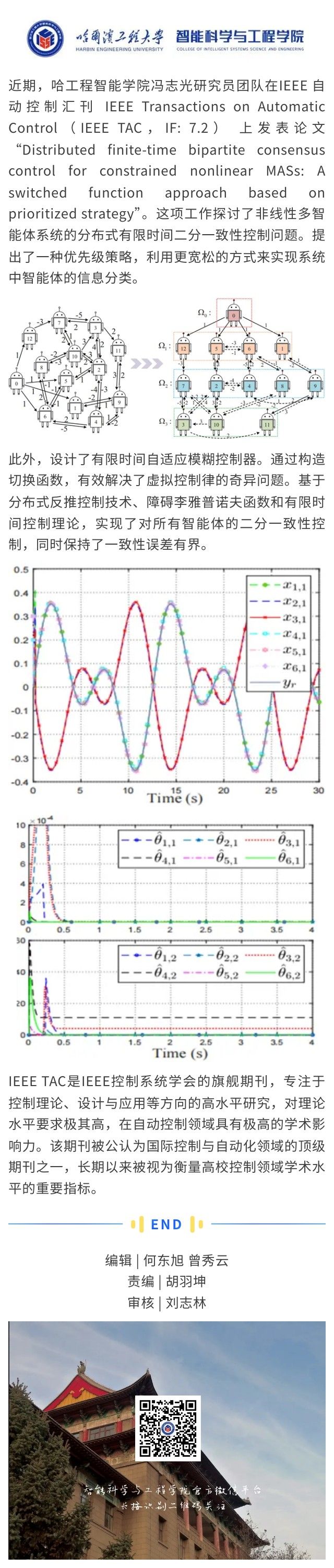 顶刊新声|我院冯志光研究员团队在IEEE TAC发表有限时间二分一致性控制研究成果
