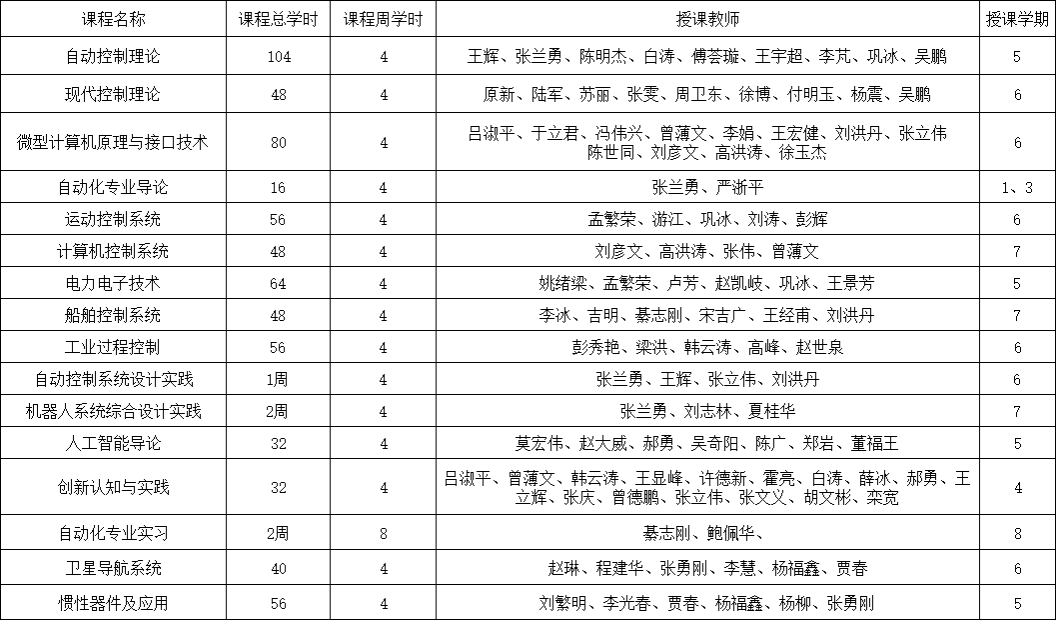 自动化专业课程情况表