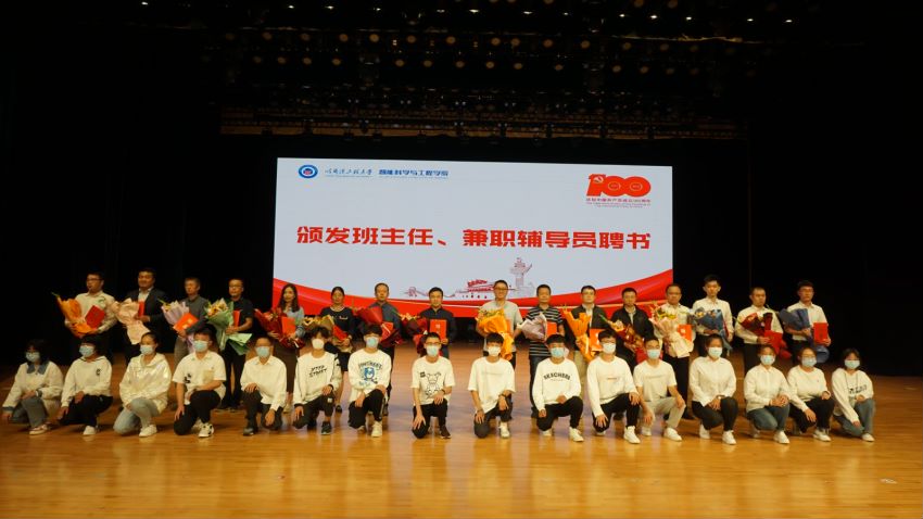 本科生新生代表陈浩楠,研究生新生代表姜瑛畔发言。党委副书记徐宝贵宣读2021级班主任、兼职辅导员名单。校长助理兼智能科学与工程学院院长赵玉新教授,智能科学与工程学院党委书记李洪波同志为班主任、兼职辅导员代表颁发聘书,随后由学生代表上台为班主任、兼职辅导员代表献花。