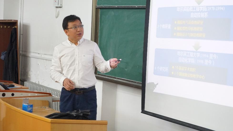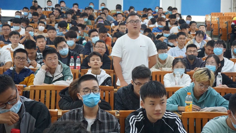 赵玉新教授以“大学的精神”为起始,引用美国知名学者的观点,列举英国、俄国社会学家等多个例子引导新生,他希望新生们能够学会独立生活、独立思考,学会合理安排自己的时间,掌握大学的学习方法。赵玉新接着又引用美国著名社会心理学家马斯洛的观点,让学生知晓大学的精神及现代大学的使命与价值。随后,赵玉新引荐习近平总书记的重要讲话指出哈尔滨工程 大学的价值追求——以祖国需要为第一需要,以国防需要为第一使命,以人民满意为第一标准。赵玉新同志详细讲述了哈尔滨工程大学诞生的背景及当时我们的师资力量——包括刘恩兰在内的中国著名科学家以及杰米多夫等许多外国专家,对我校的海道测量专业,船舰电气专业提供了坚实有力的帮助。还有许多著名大学毕业的科学工作者以及从我校毕业的老前辈对学校的发展进行了指导和帮助。随后,赵玉新介绍了哈尔滨工程大学的学院概况、综合实力、师资力量、学科平台、科学研究、战略方向。我校智能科学与工程学院控制科学与工程学科曾在162所全国高校参评的教育部第四轮学科评估中位列并列第九位,进入全国一流学科行列。我校在水下航行器技术,船舶导航定位技术等技术领域有众多建树,得到了学校的大力支持与鼓励。赵玉新同时讲解智能学院的专业设置与人才培养、学科优势、学生升学及就业方向、未来竞争优势等,会议尾声他寄语全体新生:自信人生二百年,会当水击三千里。