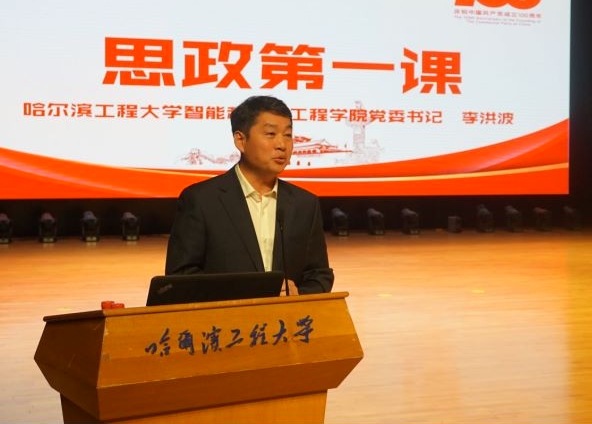 李洪波讲授以“志存高远,勇攀高峰”为主题的思政第一课。李书记借用习近平总书记对广大青年学子的寄语,希望全体学生树立远大理想、热爱伟大祖国、担当时代责任、勇于砥砺奋斗、练就过硬本领、锤炼品德修为。李洪波表达了对智能科学与工程新生的殷切期望,希望同学们能够怀揣着一颗赤子之心回报国家和人民,学院党委一直以来贯彻习近平总书记“哈军工优良传统值得发扬光大”的指示,传承哈军工精神,践行“以祖国需要为第一需要,以国防需求为第一使命,以人民满意为第一标准”的价值追求,希望同学们以我校优秀的前辈为榜样,同时,讲述了大学的学习生活,希望同学们尽快适应新的学习环境,学习方式,做好生涯的规划,努力学习专业知识,为我国事业建设做出贡献,与党同心、与国同心,早日成为有理想、有本领、有担当的新时代青年。最后祝愿同学们在未来的人生道路上,拥抱梦想,展翅翱翔!