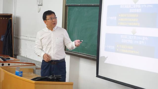 刘志林副院长向各位新生详细介绍智能学院各个专业,他表示,自动化作为哈尔滨工程大学优秀专业,历史上优秀校友层出不穷,同时自动化院科研力量雄厚,近年来取得许多杰出科研成果,具有极大的发展潜力。刘志林在讲座上指出,新生进入大学并非意味着学习的终点,进入大学,学生将面对更大的挑战,这不仅是学习上的困难,更是对学生综合素质的挑战。