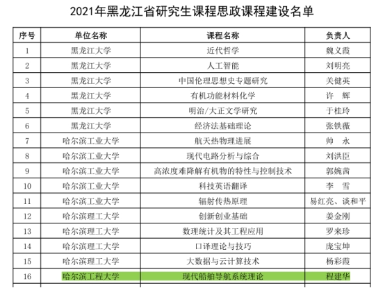 10月15日,黑龙江省教育厅公布了2021年度黑龙江省研究生课程思政、导学思政高质量建设项目立项结果的通知。智能学院5个项目获批立项,其中黑龙江省研究生课程思政课程1项、黑龙江省研究生导学思政团队1项、黑龙江省研...